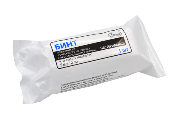 Бинт из нетканого материала медицинский с неосыпающимися краями нестерильный по ТУ 9393-015-44881728-2012