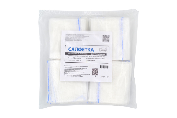 Салфетки марлевые медицинские нестерильные с рентгеноконтрастной нитью по ТУ 21.20.24-033-44881728-2023