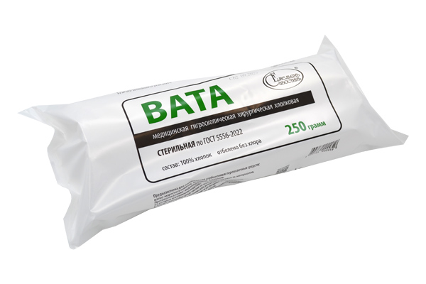 Вата медицинская гигроскопическая хирургическая стерильная по ГОСТ 5556-81, ГОСТ 5556-2022