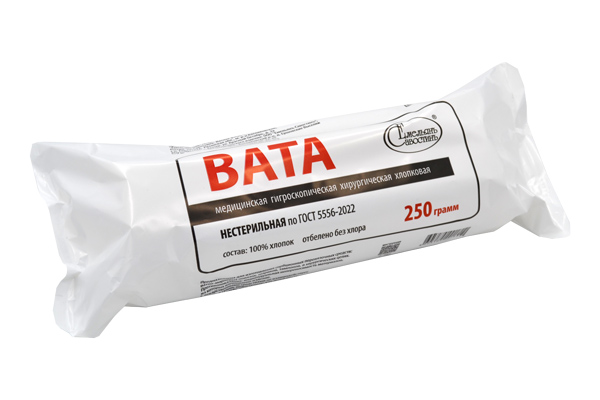 Вата медицинская гигроскопическая хирургическая хлопковая нестерильная по ГОСТ 5556-81, ГОСТ 5556-2022